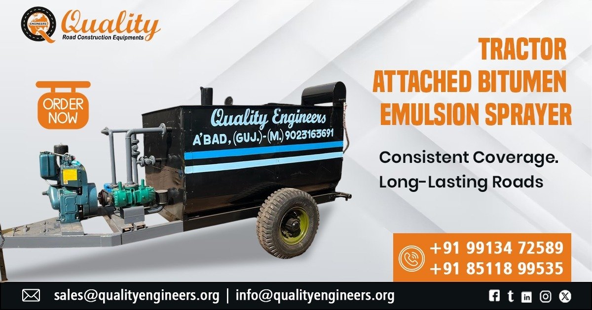 Quality Engineers is a trusted Manufacturer and Supplier of Tractor Attached Bitumen Emulsion Sprayer in Chhattisgarh. Our Manufacturing unit is